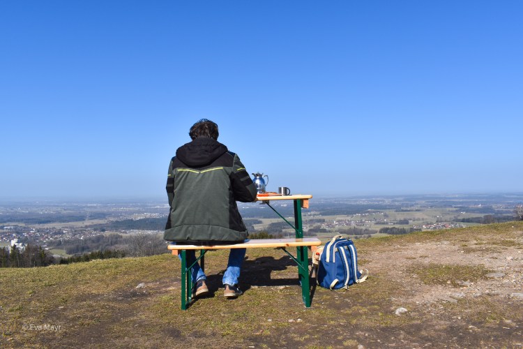 Kaffee kochen, Picknickkorb ins Auto und Kamera einpacken. Ein kurzer Abstecher beim Bäcker und schon kann es losgehen. An einem späten Donnerstag Vormittag Anfang März fuhren wir zur Aussichtskapelle am Samerberg. Warum nicht mal ein Frühstück mit dem besten Ausblick auf Rosenheim und das Chiemgau genießen?